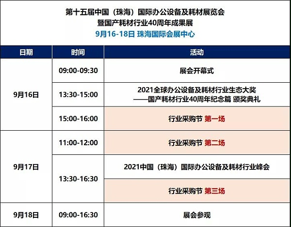 第十五届中国(珠海)国际办公设备及耗材展览会暨国产耗材行业40周年成果展将于9月16—18日在珠海国际会展中心隆重举办!