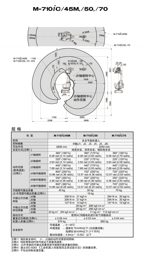 特点:作业范围大,运动性能好,用途广泛;全封闭式护罩构造,环境耐受,防尘防水;手腕负载能量大,可多点作业;智能化管理系统和力觉传感器配套,可链接多台机器人协调作业;