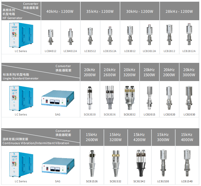 特点:电箱出力大,发波稳定;电箱模块化电路设计,减少超声电信号干扰;功能控制集中于前面板,操作直观方便;可选购压力触感起振套件;可选购电磁传感式精密行程测量组件;可快速拆装更换换能组件;